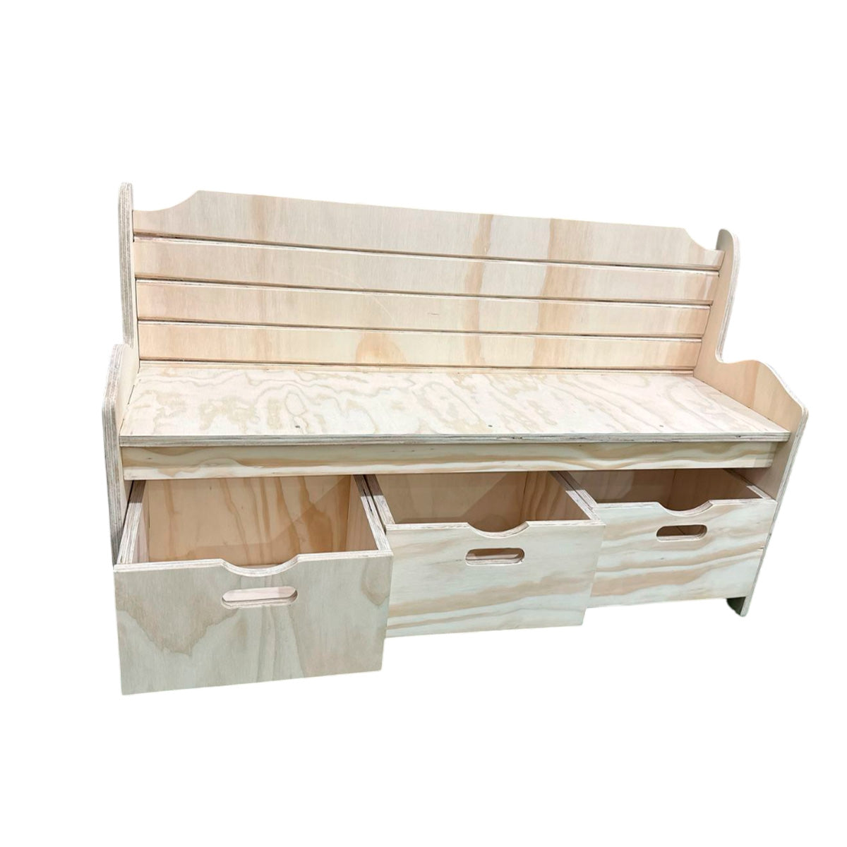 Banco Organizador Montessori de Madera para Niños con 3 Cajones